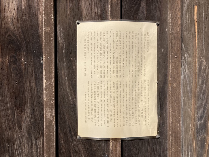 本行寺の由来を記したワープロの文書が山門の扉に貼り付けてあります。