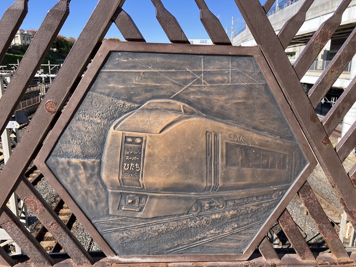 バルコニーの欄干には、かっての特急列車や夜行列車のレリーフが装飾されています。