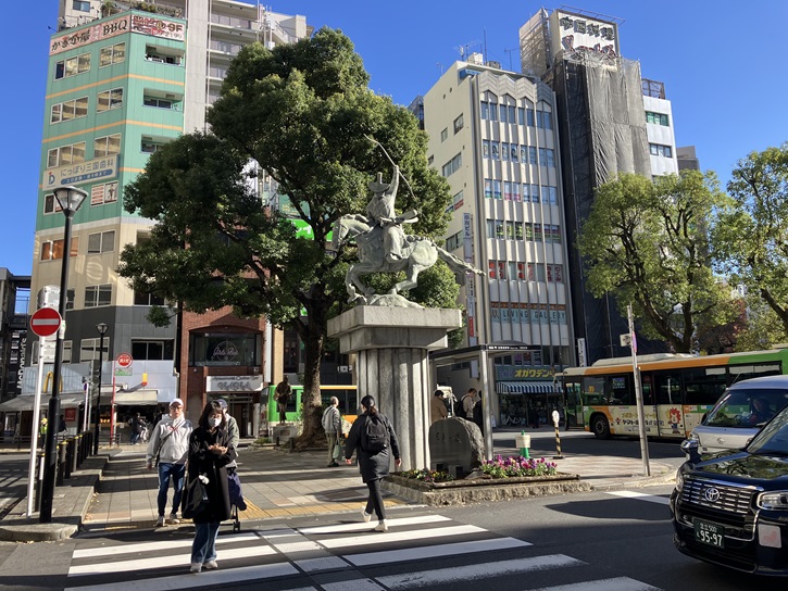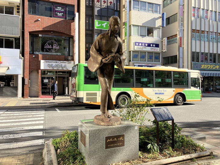 日暮里駅前にやってきました。広場には、太田道灌の銅像が建っています。