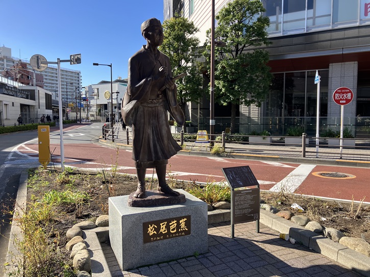 駅前広場には、松尾芭蕉の銅像が建っています。松尾芭蕉は千住から奥の細道に出立しましたので、荒川区には芭蕉関連の記念碑が多く建っています。