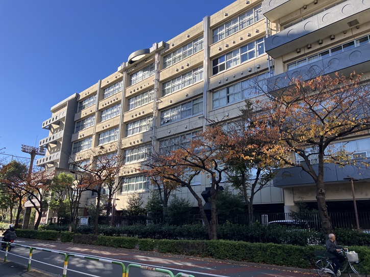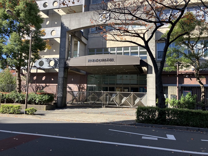 荒川ふるさと文化館(南千住図書館)から町屋駅に向かいます。通りは都立荒川工科高等学校の前でクランク状になっています。荒川工科高等学校は、昭和二十三年(1948年)4月1日に都立上野高等学校三河島分室として開校し、何度かの改称を経て、令和五年(2023年)4月1日に現在の校名になりました。「工業」でなく、「工科」となっている理由は分かりませんが、都立高校唯一の電気系専門学科のみを設置しているのが特徴です。