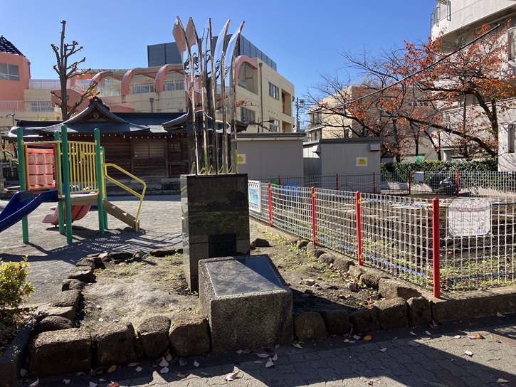 若宮八幡神社の境内にある若宮八幡児童遊園の中に記念碑が建っています。
