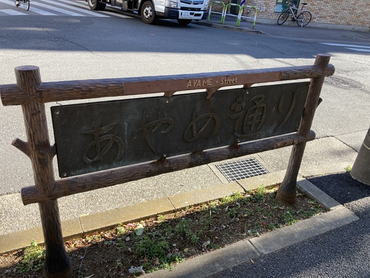 せせらぎの小路から「あやめ通り」に入ります。あやめ通りの愛称の由来については分かりませんが、銭湯や町工場なんかが点在する素朴な下町らしい通りです。ちなみに、「あやめ」は漢字で書くと「菖蒲」になります。しかし、「菖蒲」は「しょうぶ」とも読めます。「あやめ」の名の由来は、「花びらに網目の模様があることから、文目(あやめ)と呼ばれるようになったといわれています。一方で、「しょうぶ」は飛鳥・奈良時代には「あやめぐさ」と呼ばれていた歴史があります。「しょうぶ」を「あやめぐさ」と呼ぶようになった理由は諸説ありますが、「しょうぶ」を使った邪気払いの儀式をしていた女性を「あやめ」と呼んでいたことが理由といわれています。このように複雑な歴史と成り立ちがある「しょうぶ」と「あやめ」ですが、決定的な違いは、「しょうぶ」がショウブ科であるのに対し「あやめ」はアヤメ科に属している点です。外観の似ている「はなしょうぶ」や「かきつばた」もアヤメ科に属しています。ややこしいですね。
