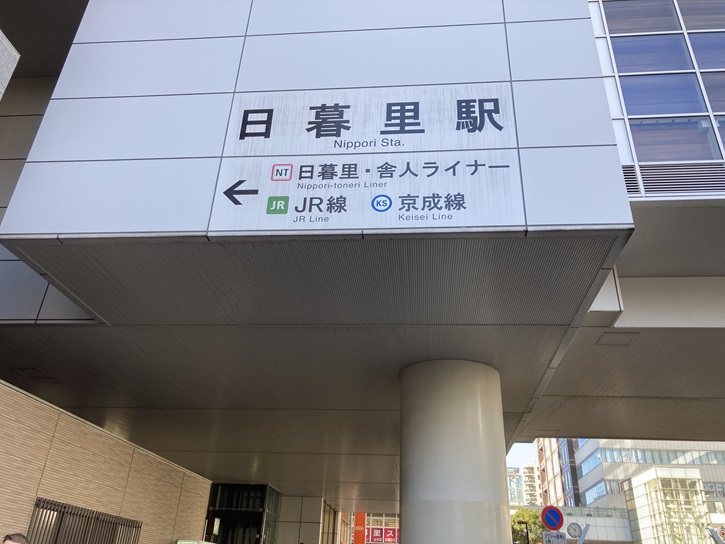 尾久橋通りを渡って、日暮里駅に着きました。日暮里駅は、明治三十八年(1905年)4月1日に日本鉄道の三河島駅〜日暮里駅間が開通し、現在のルートが完成した時に開業しました。昭和六年(1931年)12月19日には京成電気軌道(現在の京成電鉄)の駅が開業しました。平成二十年(2008年)3月30日の日暮里・舎人ライナーの開通に伴い、都交通局の駅が開業しました。なので、現在は3路線が乗り入れています。