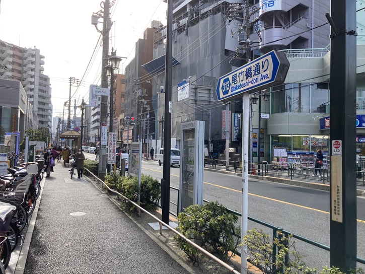 スタート地点の東京メトロ町屋駅から歩き始めます。東京メトロ千代田線の町屋駅は、昭和四十四年(1969年)12月20日に開業しました。特徴的なのは、単式ホーム1面1線上下2層構造の地下駅であることです。1番線ホーム(代々木上原方面)の下に2番線ホーム(綾瀬方面)がある立体構造となっています。町屋駅から根津駅にかけては地上を通る都道313号(尾竹橋通り)・都道457号(道灌山通り)・都道437号(不忍通り)の幅が十分でないことから、途中の西日暮里駅、千駄木駅を含めて上下2層の駅間トンネル・駅構造となっています。駅中心部における地表からレール面までの深さは、1番線が10.4m、2番線が16.3mあります。町屋駅から尾竹橋通りを進みます。