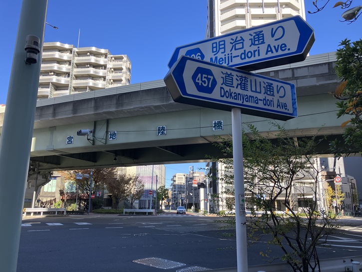 尾竹橋通りは、宮地陸橋で明治通りと交差します。尾竹橋通りは宮地交差点で向きを変え、三河島駅方向に向かいます。千代田線は、ここから西日暮里駅を経由して道灌山下交差点まで「道灌山通り」を進み、不忍通りの地下を根津駅方向に進みます。