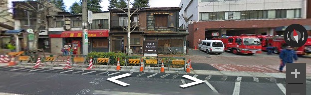 区役所の前の荒川公園の隣には恐ろしく古びた一軒家が建っています。外観からは人は住んでいないようですが、地震に耐えられるのでしょうか?実は、この昔ながらの木造家屋は長屋の一部で、端っこの棟だけを残して更地になったのです(バス停の後ろが空き地になっています)。何故右端の棟だけを残したのかは謎ですが。