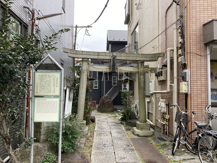 明治通りに面したスタート地点の大関横町都営バス停から歩き始めます。大関横丁の名前の由来は、「大関」を冠していることから、相撲に関係するのかと思いきや、江戸時代の下野国黒羽藩(現在の栃木県那須地方の一部)の大関氏が幕府から下屋敷として拝領したことが始まりになっています。この下屋敷があった現在の第六瑞光小学校の傍に由来の碑が建てられていて、そこには第十一代藩主である大関増業公の偉業を讃える文言が残っています。つまり大関横町は人名由来ということになります。史跡の案内板が常磐線のガード下にあるそうですが、見逃しました。ちなみに、第六瑞光小学校の傍に立っている由来の碑には次のように書かれているそうです。