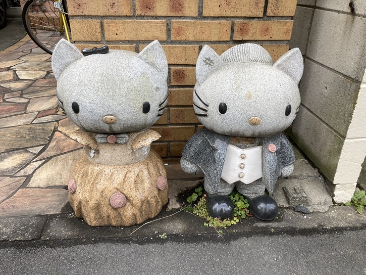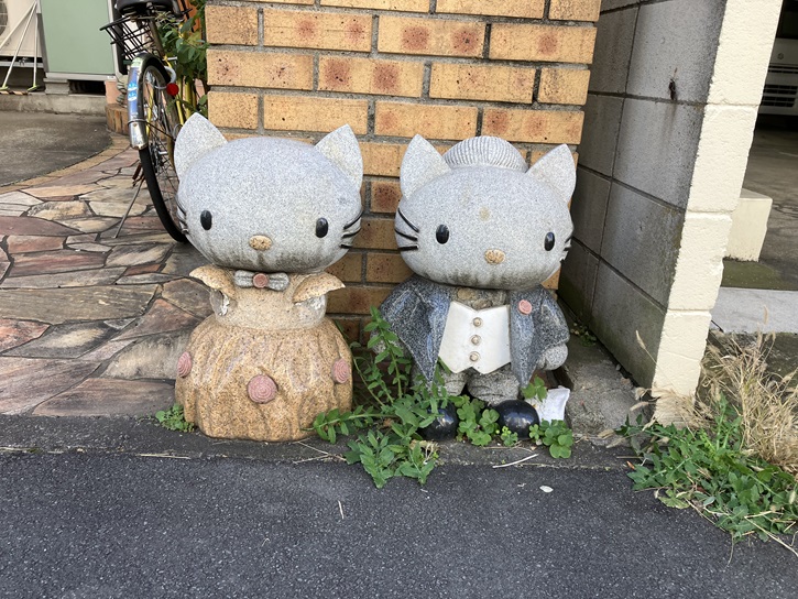 とある民家の前に、キティちゃんとボーイフレンドのディアダニエルの人形が置いてあります。左が2022年1月当時、右が2024年12月のものです。住民の方は余程のキティちゃんファンなのでしょう。