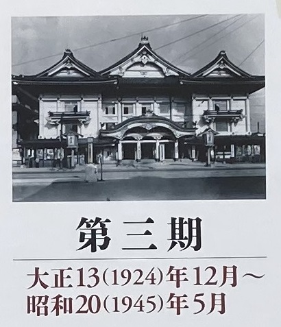 火災で焼失した第二期歌舞伎座の跡地に再建された第三期歌舞伎座。外観は奈良朝の典雅・桃山朝の豪壮な様式を取り入れたもので、建物全体は鉄筋コンクリート造。桟敷席などを除いて、座席から椅子席に改められるなど、より近代的な劇場に生まれ変わった。十五世羽左衛門、六世菊五郎、初世吉右衛門などの名優が活躍し、日本を代表する劇場としての地位を揺るぎないものとした。第二次世界大戦の戦況の悪化にともない昭和十九年二月興行を最後に休場。翌年の空襲で戦火に包まれる。