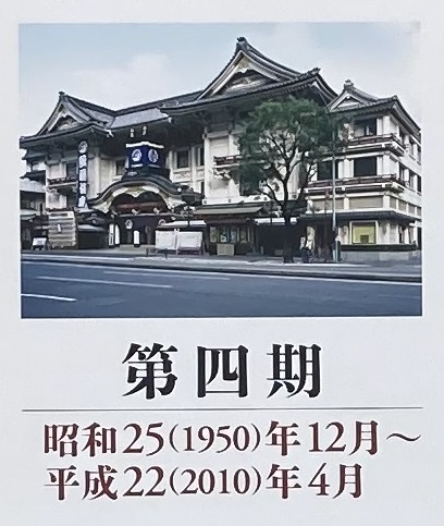終戦後、GHQの占領政策で封建的な内容の演目が上演禁止となるが、理解者の尽力により徐々に上演が解禁。歌舞伎座の再建工事も昭和二十四年に開始される。物資が乏しい時代であったため、焼け残った第三期歌舞伎座の資材を再利用するなど難工事の連続だったが、昭和二十五年十二月に第四期歌舞伎座竣工。高度経済成長期の歌舞伎ブームを巻き起こし、昭和三十九年の東京オリンピックでは「ナイト・カブキ」公演も行う。平成二年から一年を通して歌舞伎興行が行われるようになった。