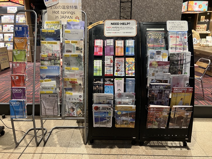 京橋駅の改札口の先に、中央区観光情報センターがあります。中央区観光情報センターは、外国人を含む旅行者に中央区の魅力を発信するインフォメーションセンターです。和とモダンが調和する雰囲気の中で、多言語による対面案内や無料Wi−Fiサービスの提供、観光情報を検索できる多言語対応のタッチパネル端末の設置など、さまざまなサービスを行っています。