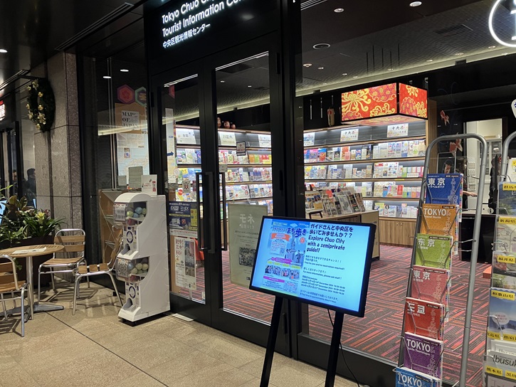 京橋エドグランB1Fにある中央区の観光情報を発信するインフォメーションセンターです。1Fには休憩・PRスペースもあります。