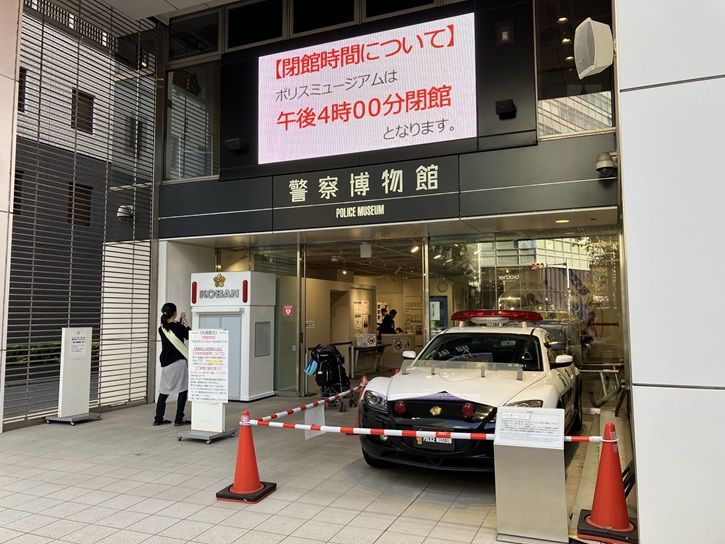 入口の前には本物のパトカーも展示されています。