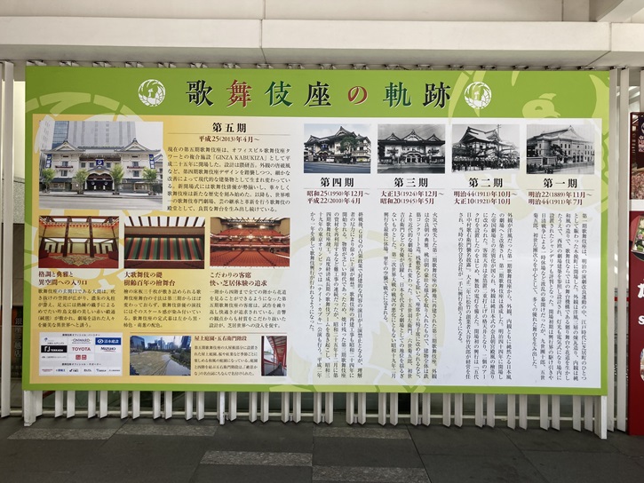 歌舞伎座の軌跡を記した巨大な案内板が立っています。