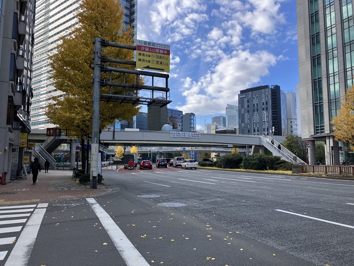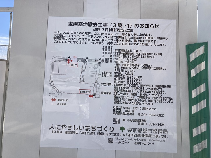 新大橋通りを浜離宮恩賜庭園から築地本願寺に向かいます。右手にはかっての築地市場の跡地が広がっています。2020東京オリンピックで、競技場に選手・スタッフを競技場に運ぶ車両基地(駐車場)として使用されましたが、既に令和四年に撤去工事は終了し、今は更地になっています。この後、どのように変貌するのでしょうか?
