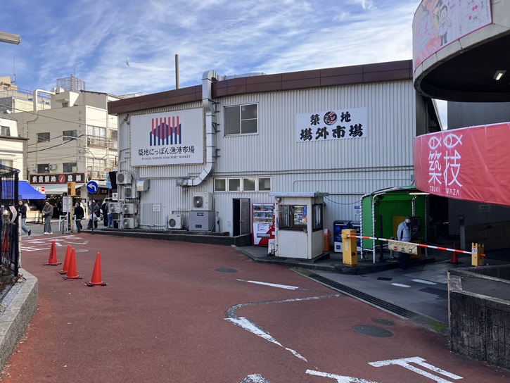 築地場外市場は旧築地市場に隣接した商店街で、場外・場外市場・築地場外などとも呼ばれます。旧築地市場と築地四丁目交差点(新大橋通りと晴海通りとの交差点)との間の築地四丁目〜築地六丁目に位置しています。築地市場の豊洲市場への移転後も営業を継続していて、はとバスのコースも設定されています。すしざんまい本店(寿司)や小田保(豚カツ・フライ)や近江屋牛肉店(食肉)など、海産物を中心に小売店や飲食店などがあります。