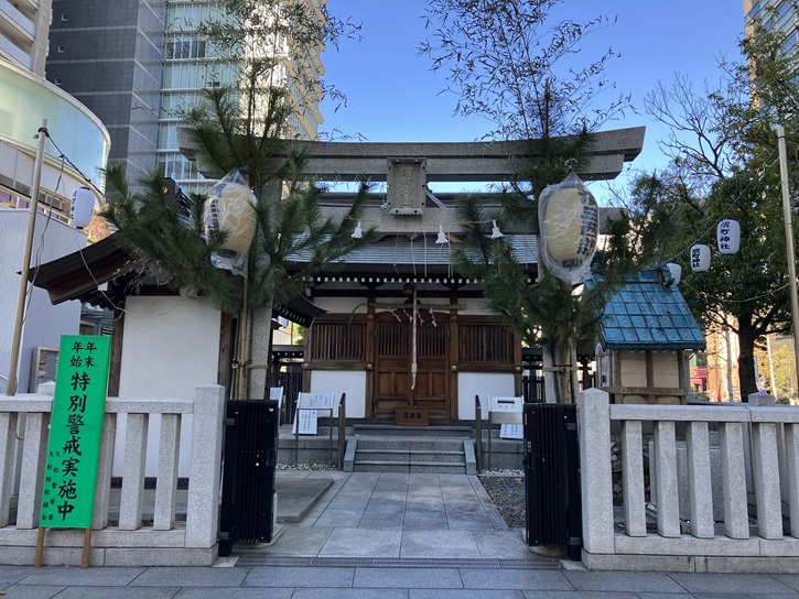 浜町神社は、稲荷大神を祀り、地元の守り神としてこの地に鎮座してきましたが、再開発に組合員として参加しました。低層棟に社務所が置かれ、それとは別に独立した社殿や鳥居が敷地内に再建され、下町らしさを感じさせる雰囲気を作り出しています。