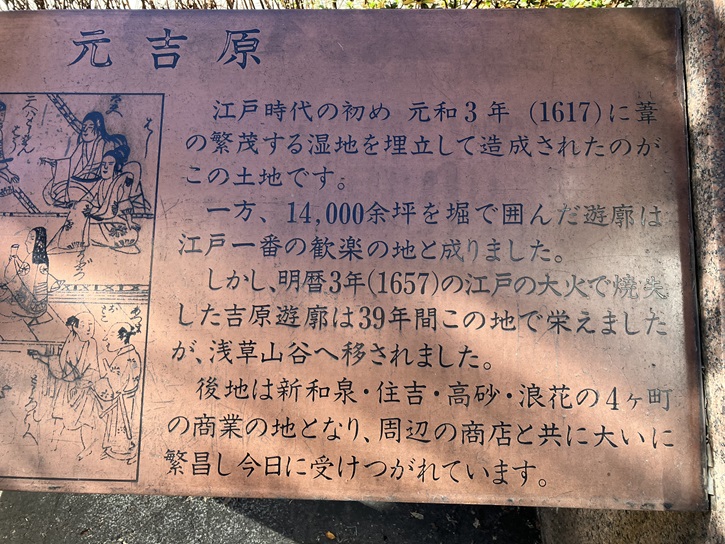 住宅棟の前に浜町の江戸時代のレリーフ画と歴史を記した案内板が立っています。
