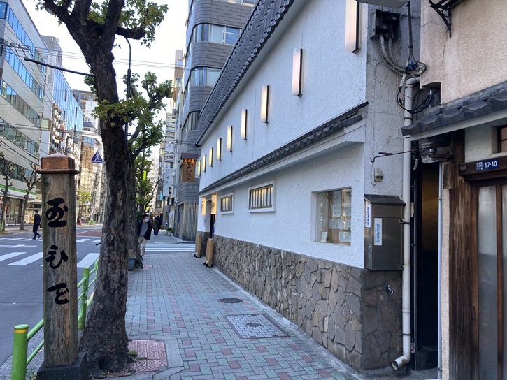 人形町は美食の街として知られていますが、鶏料理の「玉ひで」はその代表格でしょう。玉ひでは、江戸時代中期から人形町で営業を続ける老舗の鶏料理店です。親子丼を考案した店であり、平日の昼の開店前にも大行列している人気店です。玉ひでの旧屋号は「玉鉄」でした。宝暦十年(1760年)に御鷹匠の家に生まれた山田鉄右衛門が徳川将軍家に出仕するかたわら、27歳のときに妻「たま」と共に開店創業し、妻の名から「玉」・夫の名から「鉄」を採って「玉鉄」を屋号にしたのです。2025年1月に再訪した時は、建物の周囲が工事用の塀で囲われていました。建て替えを行なっているのでしょうか?