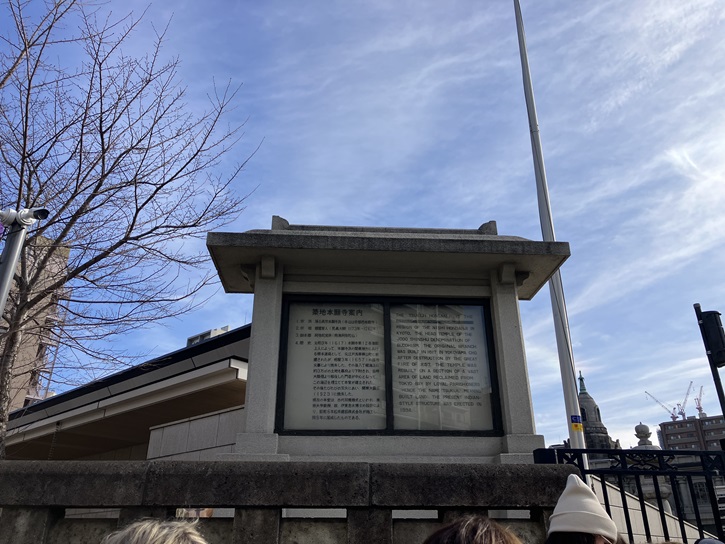 築地本願寺の宗派は浄土真宗本願寺派なので、宗祖は親鸞聖人です。境内の端に親鸞聖人の巨大な像が立っています。その一角には親鸞聖人の歩んだ系統譜が記されています。親鸞は「歎異抄」を著したと学校で習ったような気がするのですが、親鸞の死後に弟子の唯円が書いたみたいですね。親鸞の教えは難解で、実子である善鸞でさえも理解できなかったようです。「歎異抄」とは、親鸞と「異」なる教えがなされたことを「歎」いた本という意味なんでしょうか?