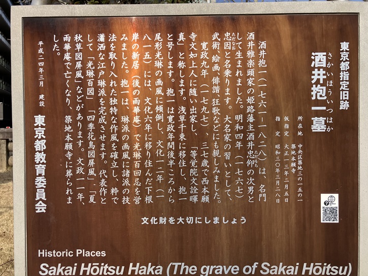 新大橋通りに沿った境内の一角に沢山の石碑が墓碑が並んでいます。最初は、「酒井抱一」のお墓です。