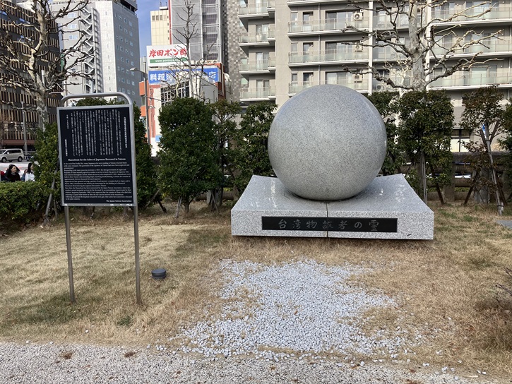 境内に球体の石碑が置かれています。最近は一般のお墓でも様々な形の墓石が見られますが、案内板には「台湾物故者・・・」と書いてあります。遠い異国の地で亡くなった方々の霊も祖国の地で安眠できることでしょう。
