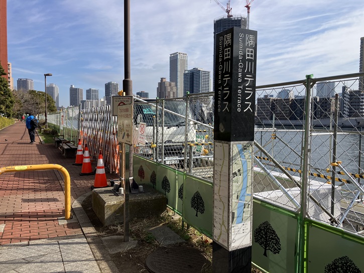- 今日は中央区の「Course8.築地・月島・晴海 隅田川と運河の光景」を歩きます。築地駅から隅田川テラスに出て佃橋まで川沿いを歩き、佃大橋と朝潮大橋を経て、月島を周遊し、最後は築地大橋から旧築地市場の跡地を眺めます。東京オリンピックが終わり、選手送迎用バス待機所としての役割が終わった広大な敷地は更地になりました。最初に歩いたのは2022年の2月でしたが、記憶が薄れてきましたので2025年1月に改めて歩きました。