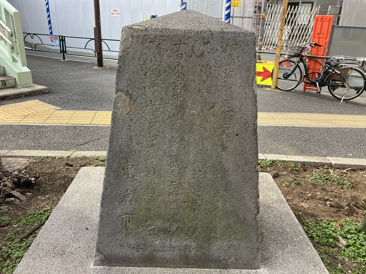 The subject bridge was built in June 1928 under the reconstruction project of the great Kanto Earthquake between the bank of Tsukiji 3 chome(currently Tsukiji 3, 4) and Minamiodawaracho 1 & 2chome (currently Tsukiji 6)over the south subsidiary stream of Tsukiji River. Because of the reclamation work of Tsukiji River and the expansion work of roads starting in 1986, the bridge itself was removed. However, one granite newel post together with a part of bridge railings were moved here for conservation.