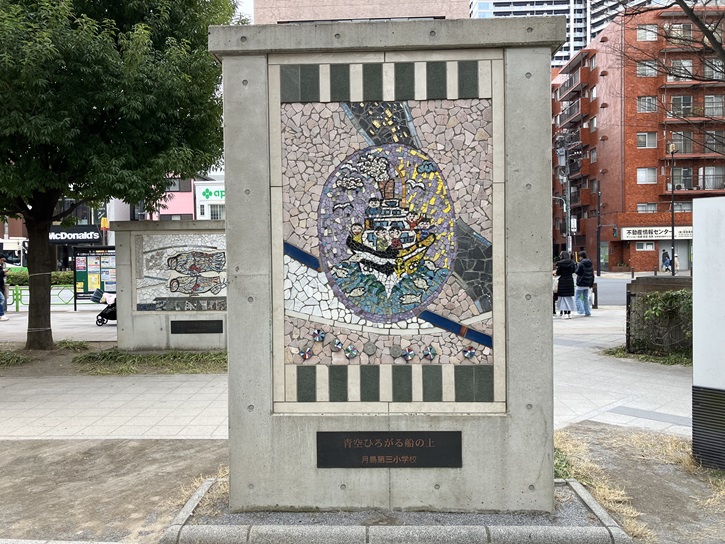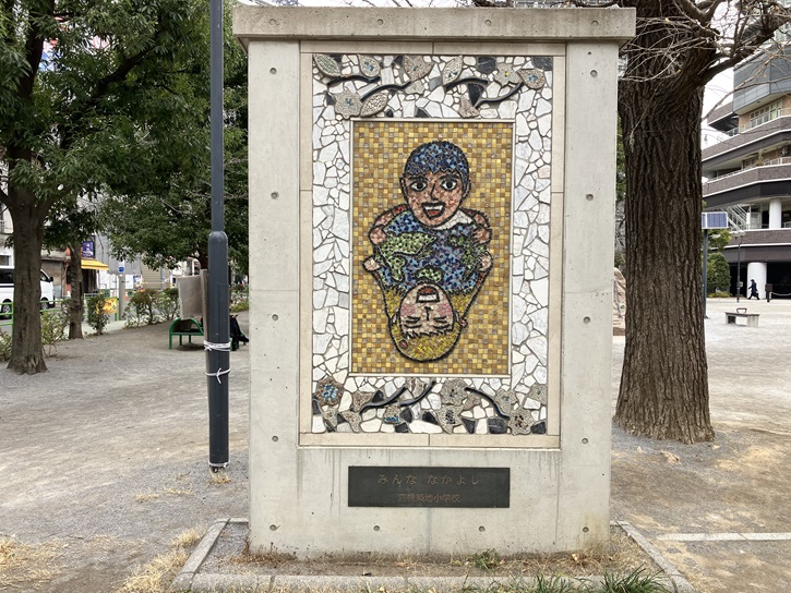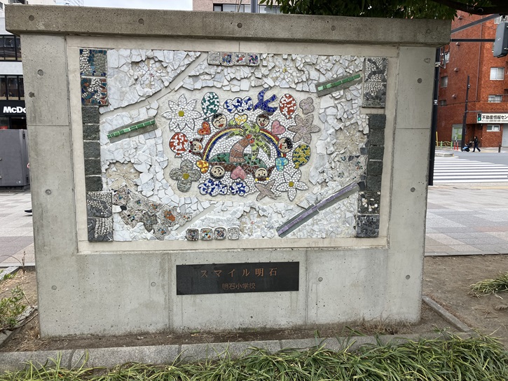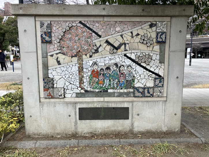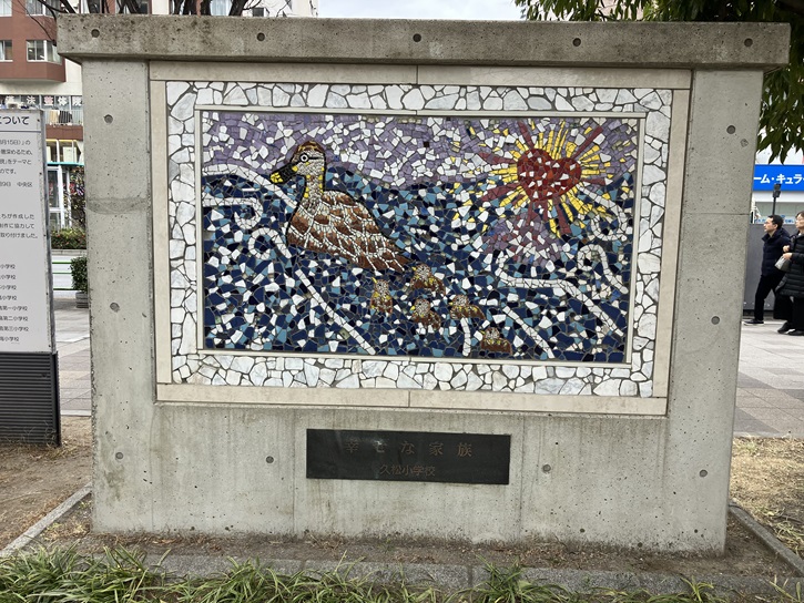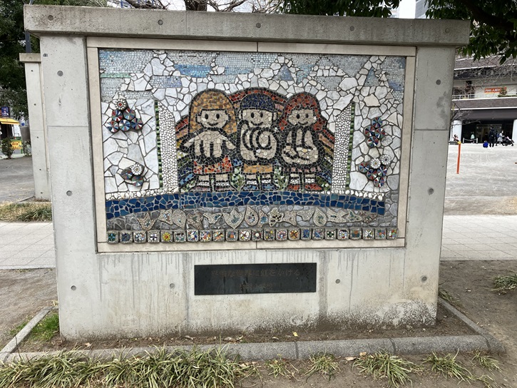 区立小学校16校の子どもたちが作成した原画をもとに、障害のある方が制作に協力して「モザイク平板」に加工し、台座に取り付けました。