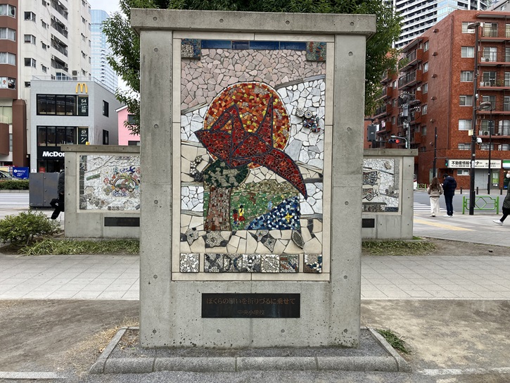 「ぼくらの願いを折りづるに乗せて」 中央小学校の作品です。