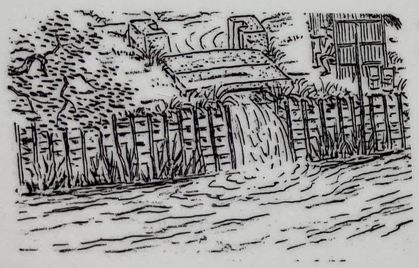 “せき”と“かけどよ”の間には水番小屋があり、昼も夜も大切な水がむだに使われないように見守ったり、水門を開けたり閉めたりして、水の調節をしていました。そして米作りのために水が必要な5月から9月まで水門は閉められます。内川に流れ落ちなくなった用水は、この“かけどよ”を通って、大森のあちらこちらの田んぼにゆきわたるようにしてありました。
