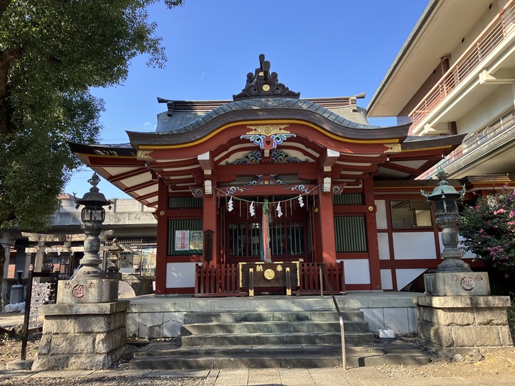 平和島駅東口から国道15号(第一京浜)を北に向かいます。左手に大森神社が鎮座しています。大森神社は、天正年間(1573年〜1592年)の創建と伝えられています。当時この辺りは海辺であり、住民は漁業を生業にして生活をしていました。ある時黄金色に輝く像が岸辺に流れつき、住民は畏れて沖へ流すこと三度に及びましたが、その度に元の場所に流れてきましたので、住民が社を建ててその像を祀ったのが大森神社の起源といわれています。そのため、この社を寄来明神または寄来神社と称しました。明治元年に神祇伯白川資訓王から大森神社の社号と額面を賜わり、その後、昭和七年10月の大東京都実現の折に大森神社と公称するようになりました。