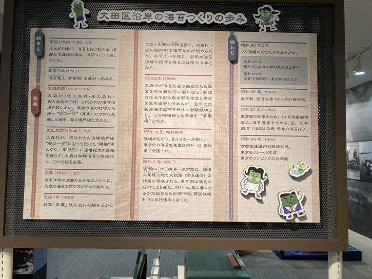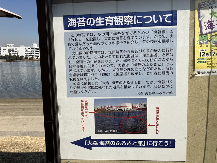 大田区における海苔養殖の歴史を記したパネルが立っています。