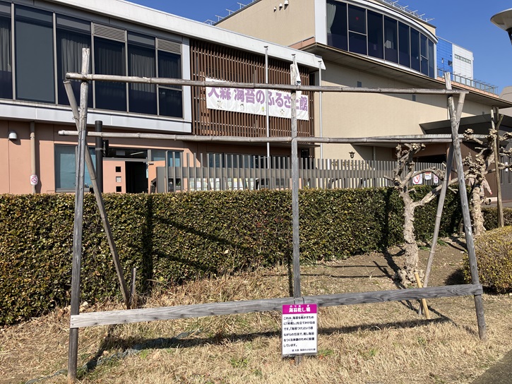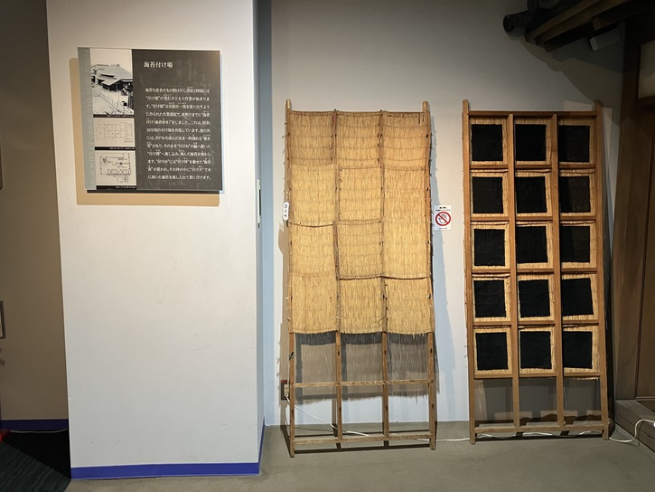 建物の前には、実物の海苔乾し場が置かれています。