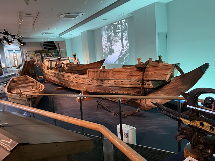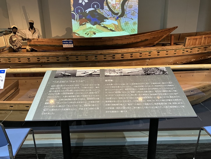 館内に入ると、正面に巨大な海苔採り船が展示されています。