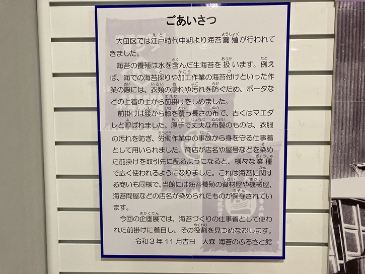 特別展も行なわれているようです。2022年2月に訪れた時には、「海苔漁師の仕事着 前掛け編」が開催されていました。
