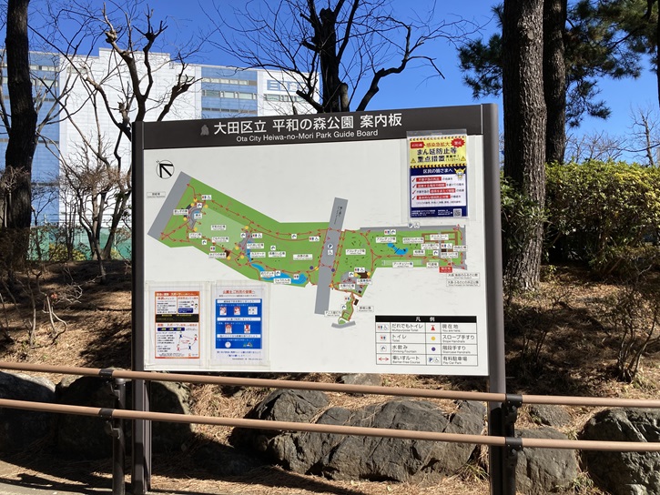 大森海苔のふるさと館の直ぐ隣から環七を挟んで南北に平和の森公園が広がっています。