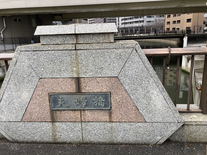現在の夫婦橋は昭和五十八年(1983年)に新しく架け替えられたものですが、昔の夫婦橋の親柱が公園内に保存されています。春は桜、秋はイチョウが楽しめます。
