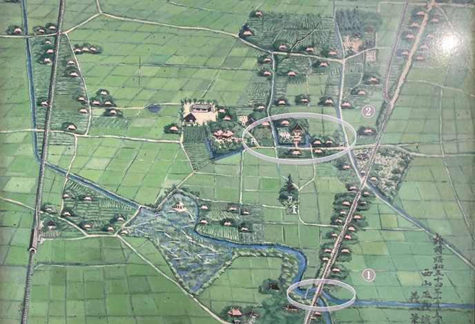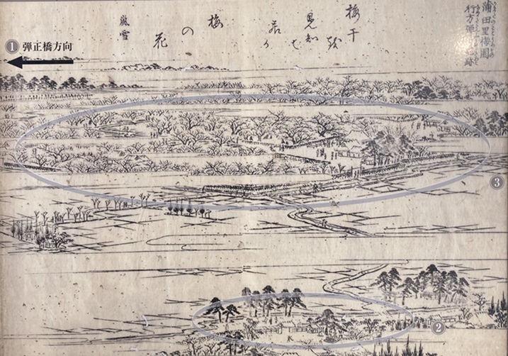 蒲田里梅園と行方弾正宅跡(江戸名所図会より)