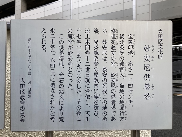 大田区文化財 妙安尼供養塔