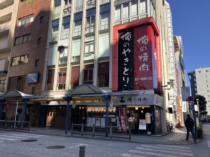 京浜蒲田公園を出て「俺のやきとり・俺の焼肉」を横目に見ながら、ビルの谷間を曲がりくねりながら延びる「さかさ(逆)川通り」に入ります。通りの両側に飲食店が並んでいますが、ここではこの地域の諸団体を中心に「蒲田東口おいしい道計画」に基づく取り組みがなされていて、官民学の連携の下で、街路とパブリックスペースの活用を通して蒲田東口地区の活性化を目指しています。