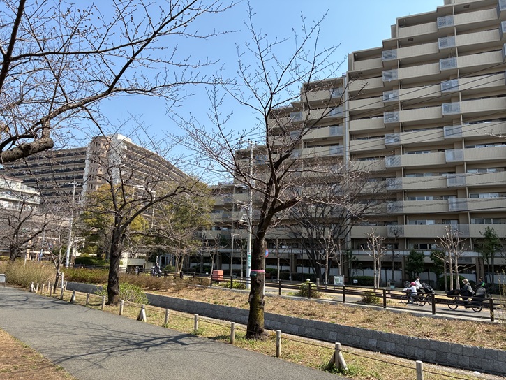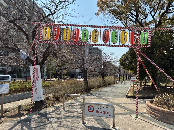 仙台堀川公園には約500本の桜の木が植えられていて、3月下旬頃から全長900メートルものソメイヨシノの桜並木が出現して江東区の春の名物になっています。