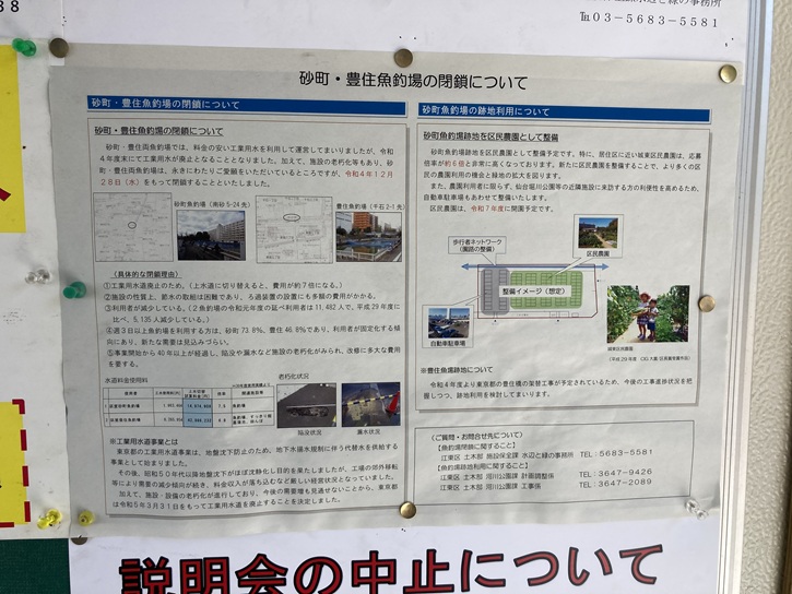 砂町・豊住魚釣場の閉鎖について