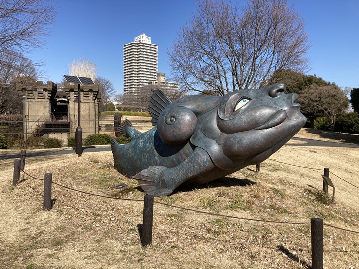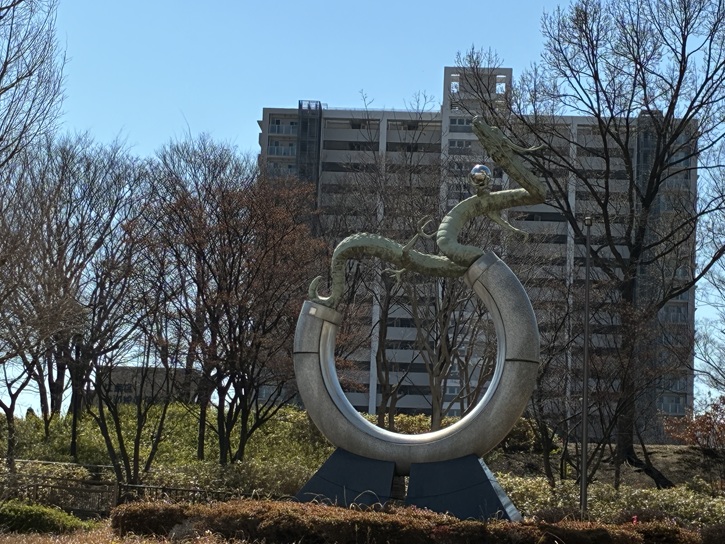 とされています。「潮風漂う荒川に沿って葛西橋へ「砂町の歴史を探そう」」は江東区の東エリアを巡りますので、四神のうち東の方角を守護する青龍のグループに入っています。駅前広場の中央の植え込みの中に青龍のモニュメントが置かれています。