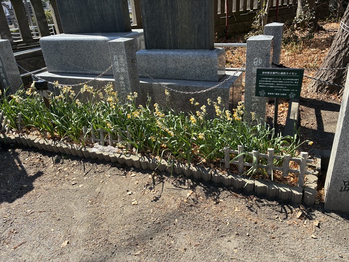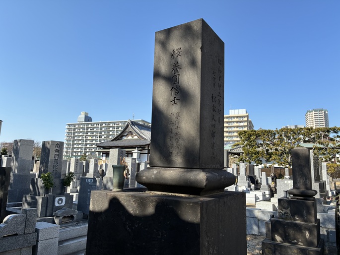 因速寺の墓地には、野菜の促成栽培を始めたと伝えられる松本久四郎のお墓があります。