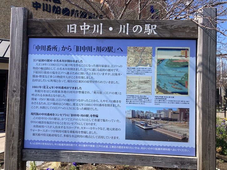 水彩都市・江東の歴史を伝えるために、小名木川の中川口に設置されていた関所「中川番所」の地に資料館を開設し、ジオラマなどにより、中川番所を再現し関東や江戸の水運、江東区の歴史・文化がわかる資料を展示しています。