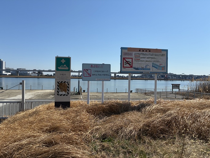 中川船番所資料館の前の横断歩道を渡ると、旧中川の堤防上に「旧中川・川の駅」の施設があります。