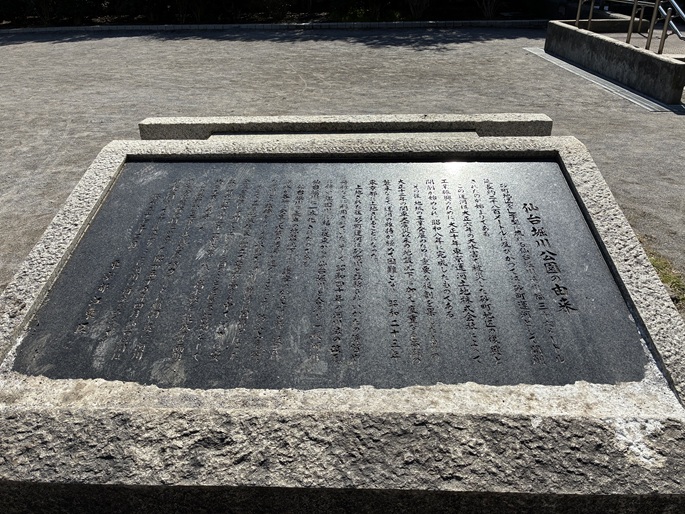 区民の憩いの場として親しまれているこの仙台堀川公園は、かって砂町運河として民間の手により開削された、例の少ない運河です。砂町が農村から工業の町へと発展していくなかで、船による輸送力の向上を見越して運河の開削が計画され、大正八年(1919年)に東京運河土地株式会社が創立されました。同十一年に着工し、小名木川の合流点から現在の都立東高校の正面にあたる東砂7−19までの南北の一線、続いて旧舟入川合流点から横十間川合流点までの東西の一線が昭和八年(1933年)までに完成しました。昭和二十三年(1948年)、東京都に移管されて砂町川と名称を改め、昭和四十年、河川法の改正に伴い、仙台堀川の一部となりました。昭和三十年ごろまでは、周辺の製材工場の木材が水面に浮かぶ光景がみられましたが、砂町が工業地帯から住宅地へと変貌をとげると、運河としての役割も終わり、昭和五十五年に埋め立てられ、親水公園として生まれかわりました。