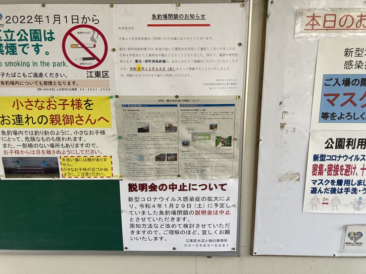 しかし、しかし、砂町魚釣場は料金の安い工業用水を利用して運営していますが、東京都の工業用水事業が廃止となる予定のため、令和四年12月28日(水)をもって閉鎖されるとの告知がされています。